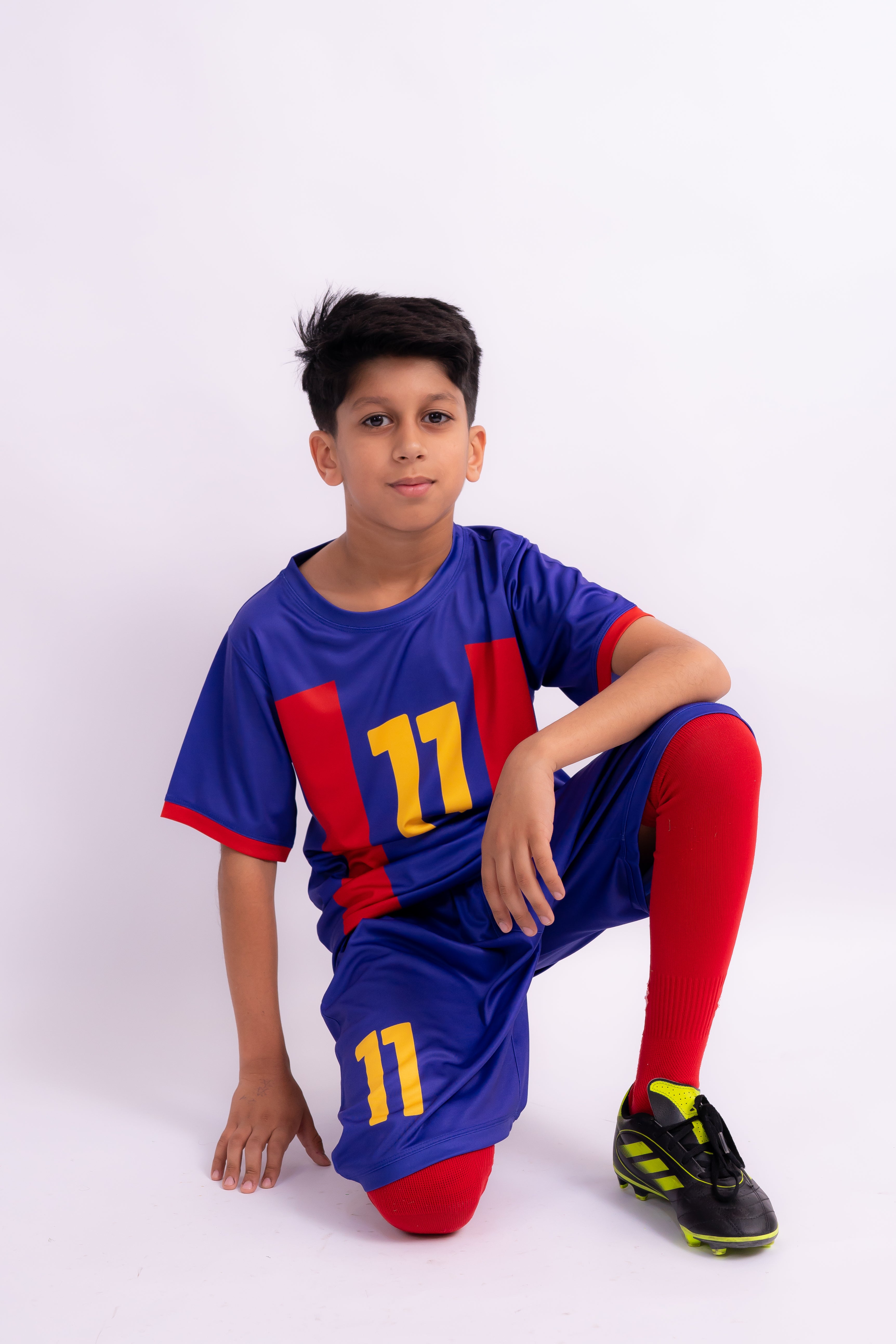Unleash your child’s inner champion with the Neymar Kids Soccer Kit in striking blue and red.