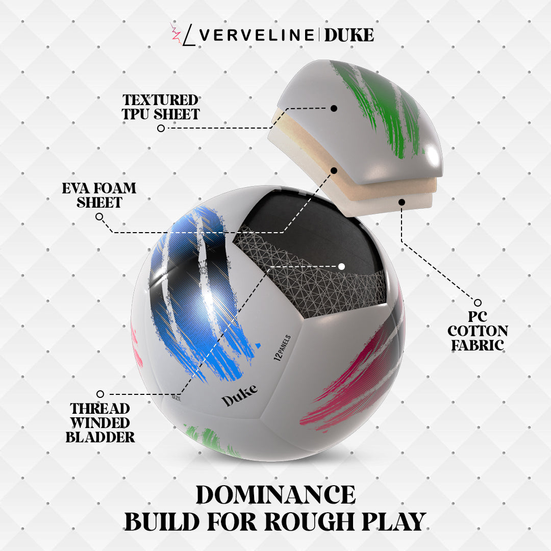 Bladder: Synthetic Rubber Bladder is used in the core of the football for optimal temperature and abrasion resistance. The bladder is wound with thread to keep the football intact and dent-free.